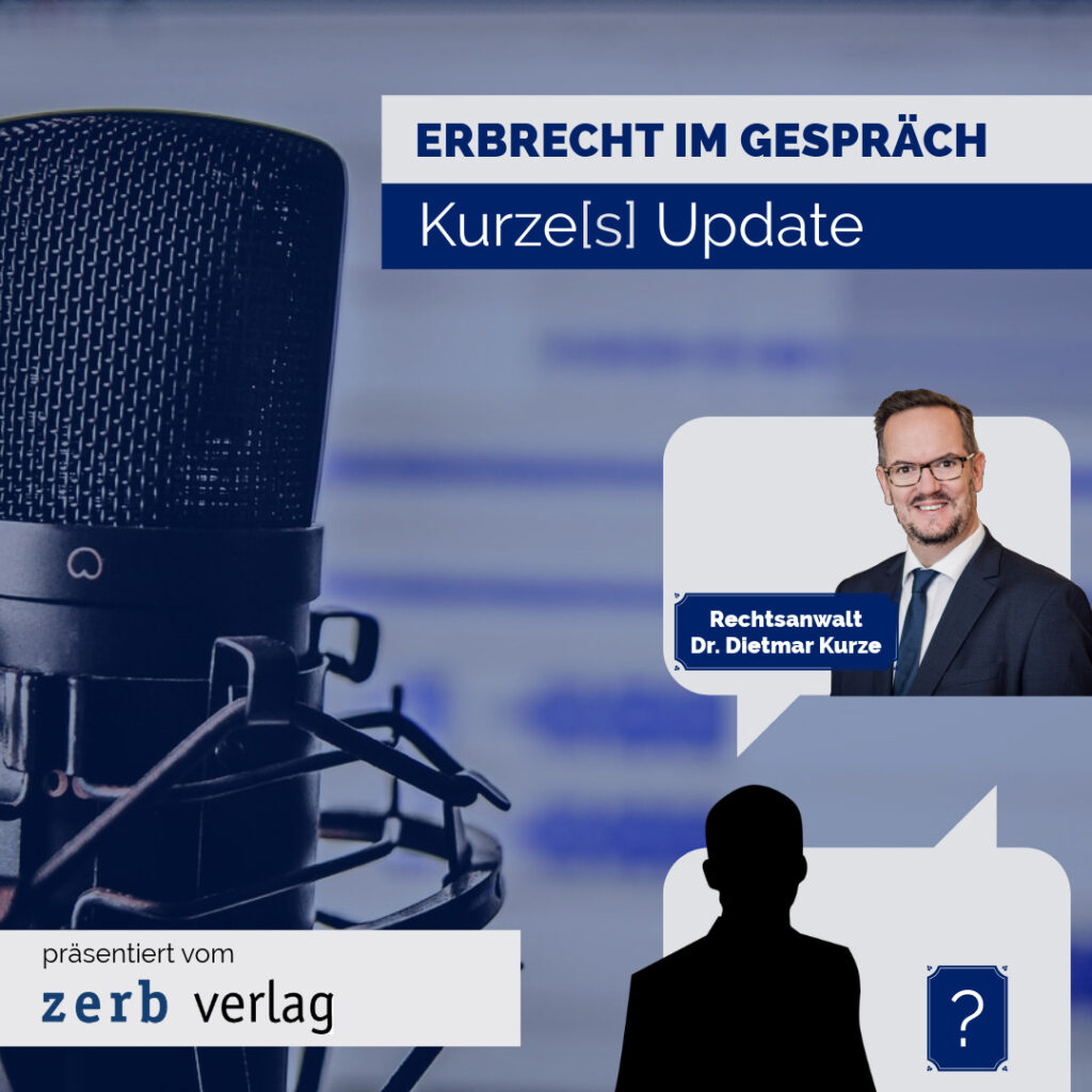 Der zerb-Podcast mit Dr. Dietmar Kurze. Erfahren Sie alles über die neuesten Entwicklungen im Erbrecht. In jeder Folge beleuchtet Dr. Dietmar Kurze im Gespräch mit Expert:innen aktuelle News und Themen, die Erbrechtler:innen und ihre Mandanten heute bewegen.